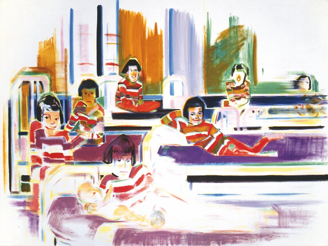 1, 1 x 1,3 m, Serie von 17 Bildern, Acryl und Buntstift auf Vinylfolie
